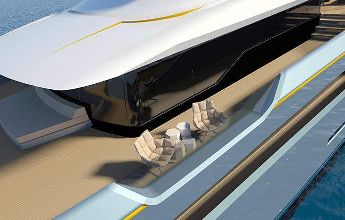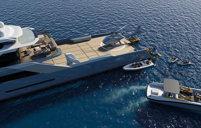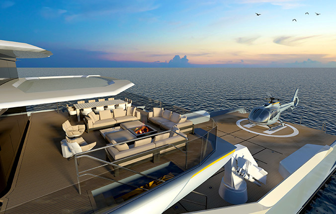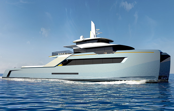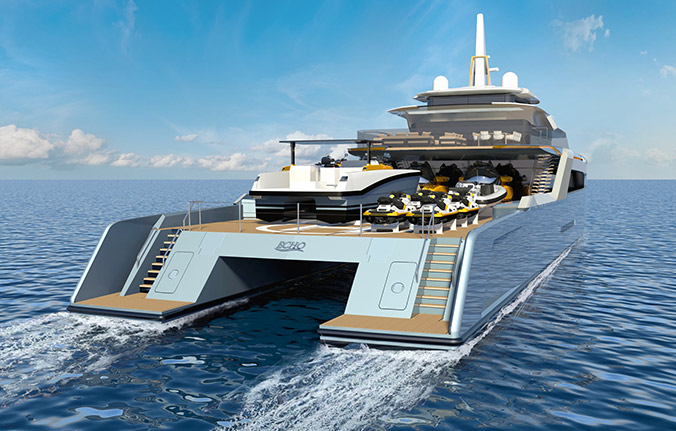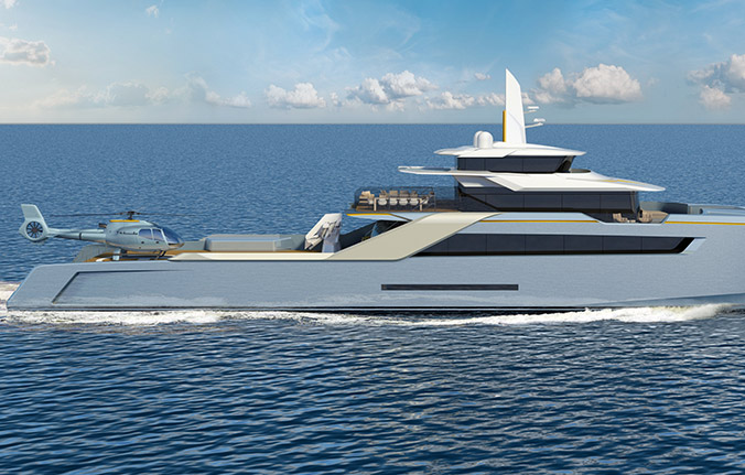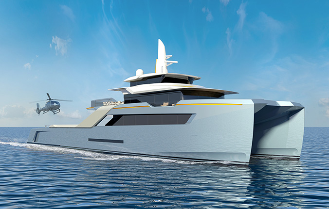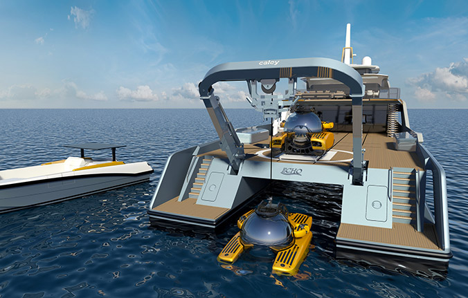 Echo Yachts, Bannenberg & Rowell Design and Incat Crowther Naval Architects present ASY50 (Project Echo). Project Echo fuses form and function together in a stylistic yet practical new design. Integrated A-frame and back-up knuckle book crane submersible and tender craft cargo handling, with comfortable guest interior and exterior entertaining spaces all on a proven, very stable and efficient catamaran hull form for long range cruising. Multiple configuration option available including a fully rated helicopter platform and tender stowage undercroft. More information is available in our news section.
