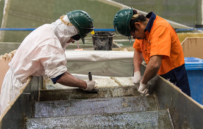 Complex shape fabrication can be achieved easily with our CNC router cutting ability and our skilled in-house team, which have intricate hull forming experience.