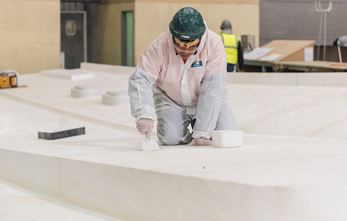 With our specialised low-vapour Vacuum Infusion Process, single mould sections in excess of 500m2 are infused efficiently.