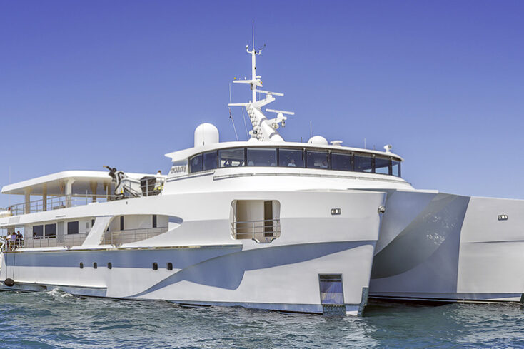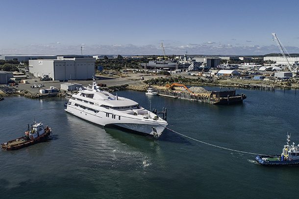 Echo Yachts 84m trimaran White Rabbit launched in Henderson, Western Australia Australian custom Superyacht builder Echo Yachts are proud to announce the successful launch of their 84m superyacht newbuild project…